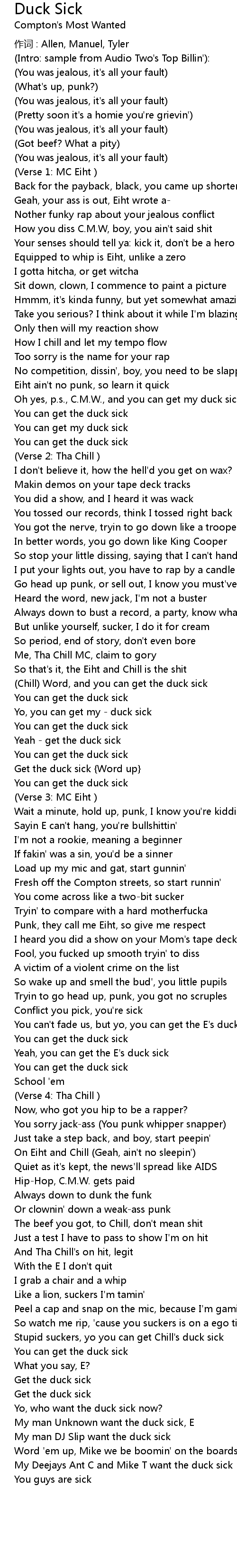 | Yo, you can get my - duck sick | |