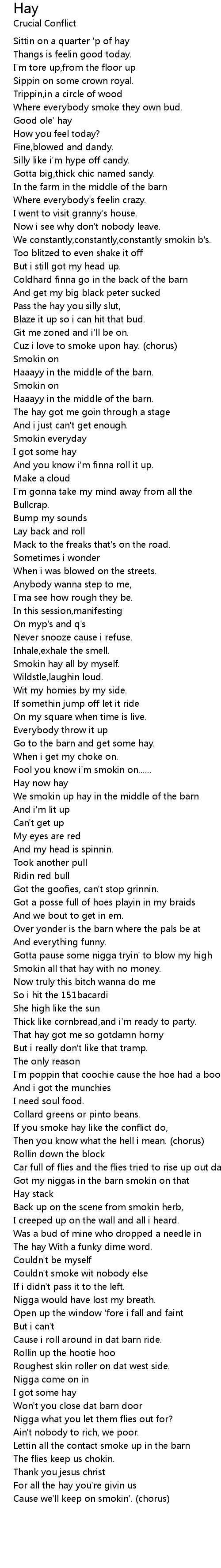 Cuz i love to smoke upon hay. (chorus) |