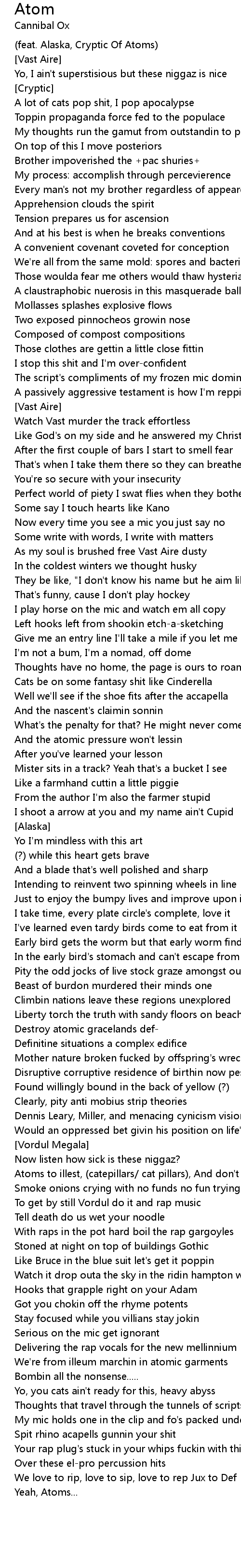 Atoms to illest, (catepillars/ cat pillars), And don't choke guns |