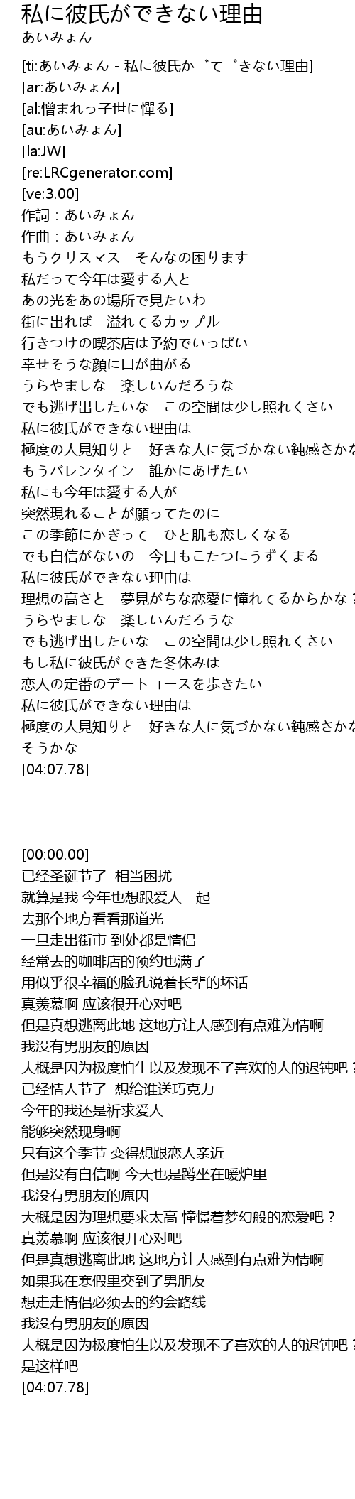 | [01:58.76] | 私に彼氏ができない理由は |