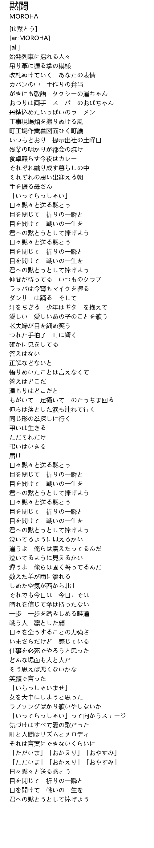 | [01:36.65] | 日々黙々と送る黙とう |