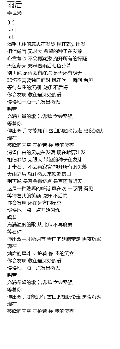 | [00:18.84] | 相信勇气 无限大 希望的种子在发芽 |