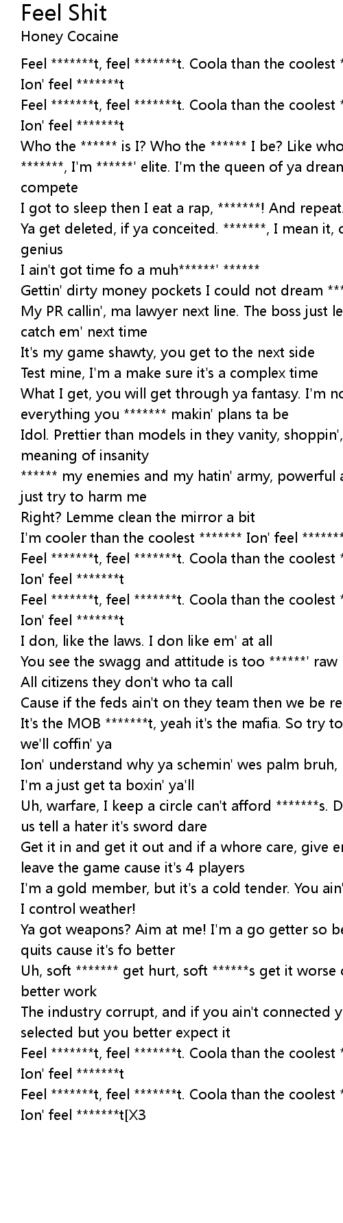 [00:15.17] Feel *******t, feel *******t. Coola than the coolest *******