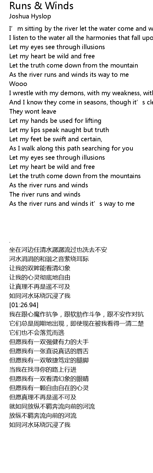 | [02:42.34] | As the river runs and winds |