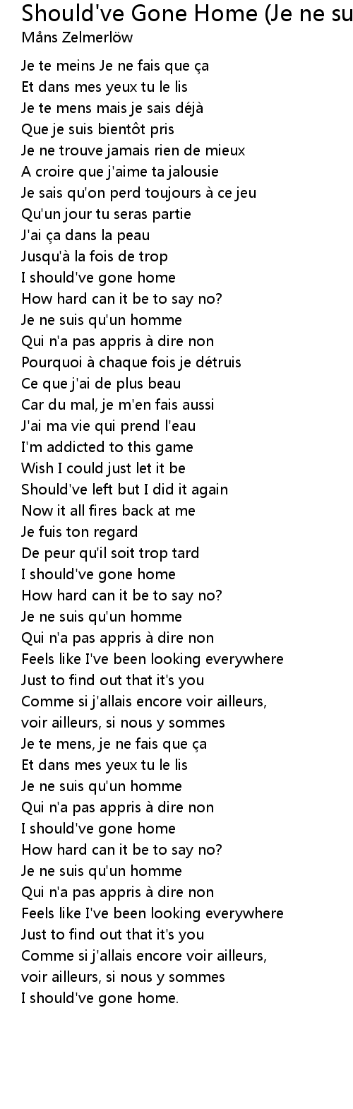 | Song | Should've Gone Home (Je ne suis qu'un homme) |