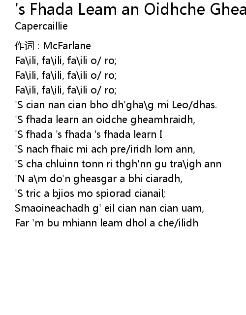 | Song | 's Fhada Leam an Oidhche Gheamhraidh |
