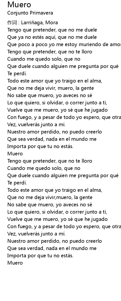 | Que poco a poco yo me estoy muriendo de amor por ti. | |