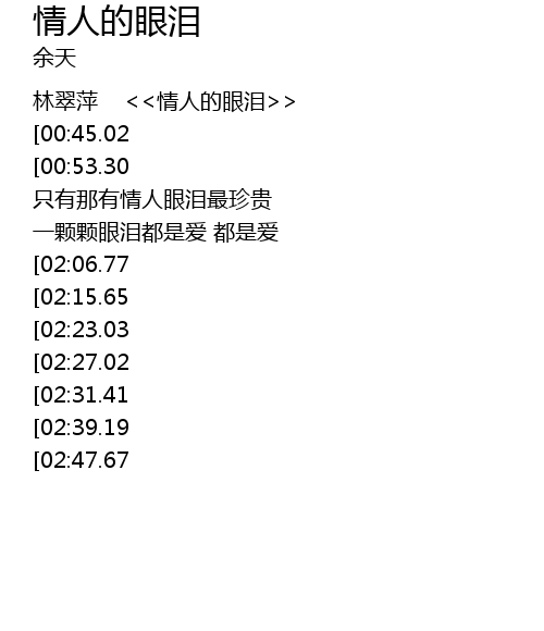 | [00:00.40] | 林翠萍 <<情人的眼泪>> |