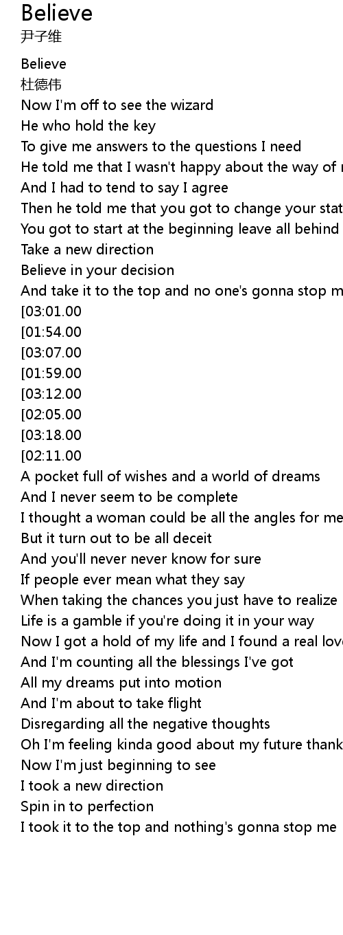 | [00:01.00] | Believe |