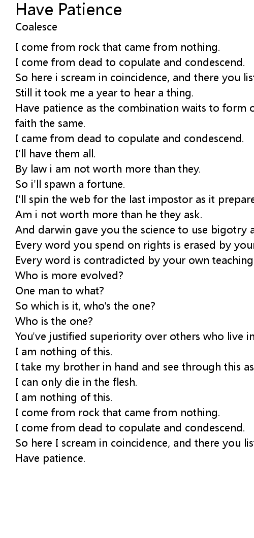 Have patience as the combination waits to form one ounce of trust, and your faith the same. |