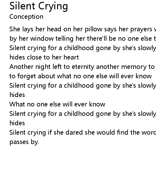 Silent crying for a childhood gone by she's slowly dying with the secret she hides close to her heart |