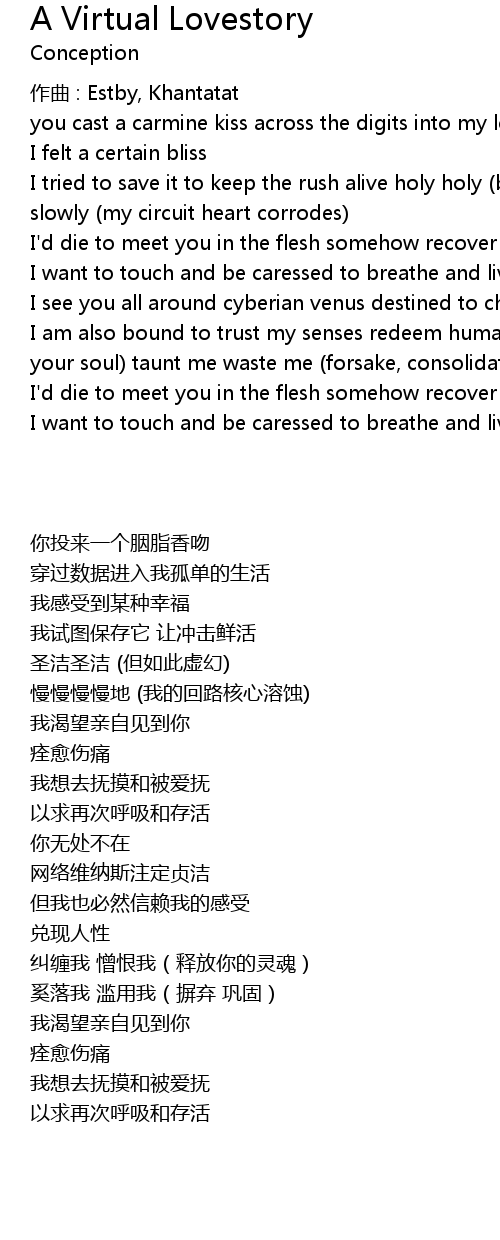 | I tried to save it to keep the rush alive holy holy but so unreal slowly slowly my circuit heart corrodes | |