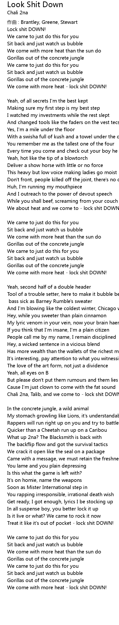 | Song | Look Shit Down |