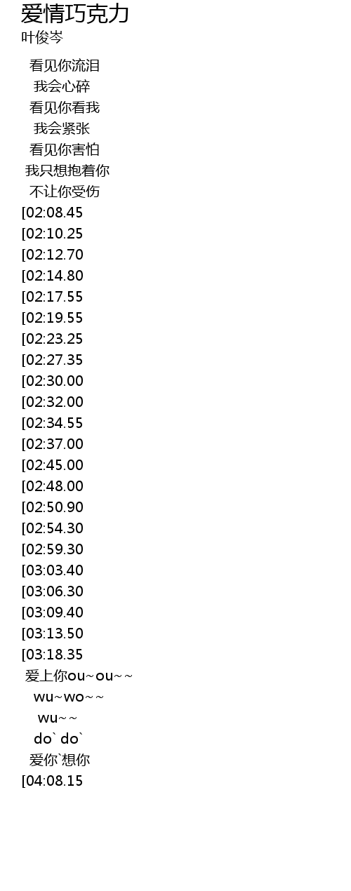 | [01:31.65][03:03.40][03:45.50] | 我爱你~~~ |