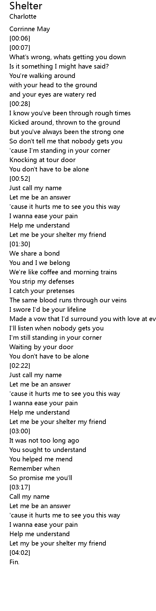 Let me be your shelter my friend |