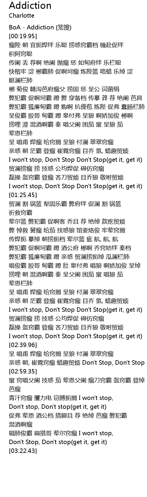 | [00:00.00] | BoA - Addiction (笼馒) |