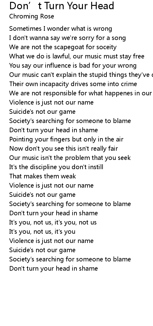 Don't turn your head in shame |