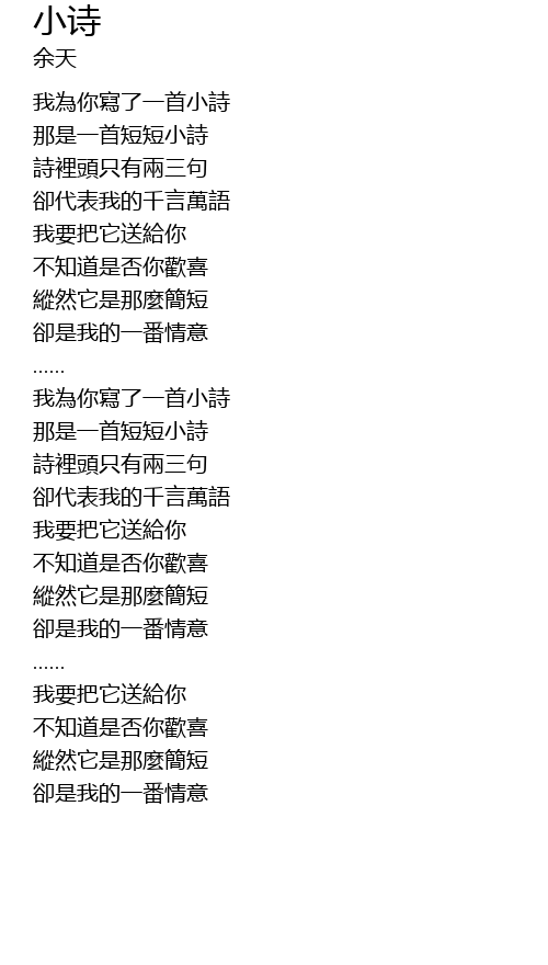| [00:34.39] | nà shi yī shǒu duǎn duǎn xiǎo shī |