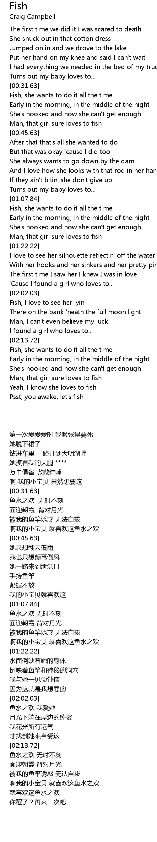 Fish, I love to see her lyin' |