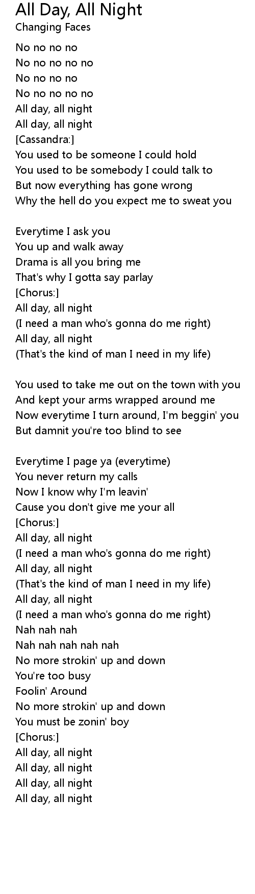 All day, all night |