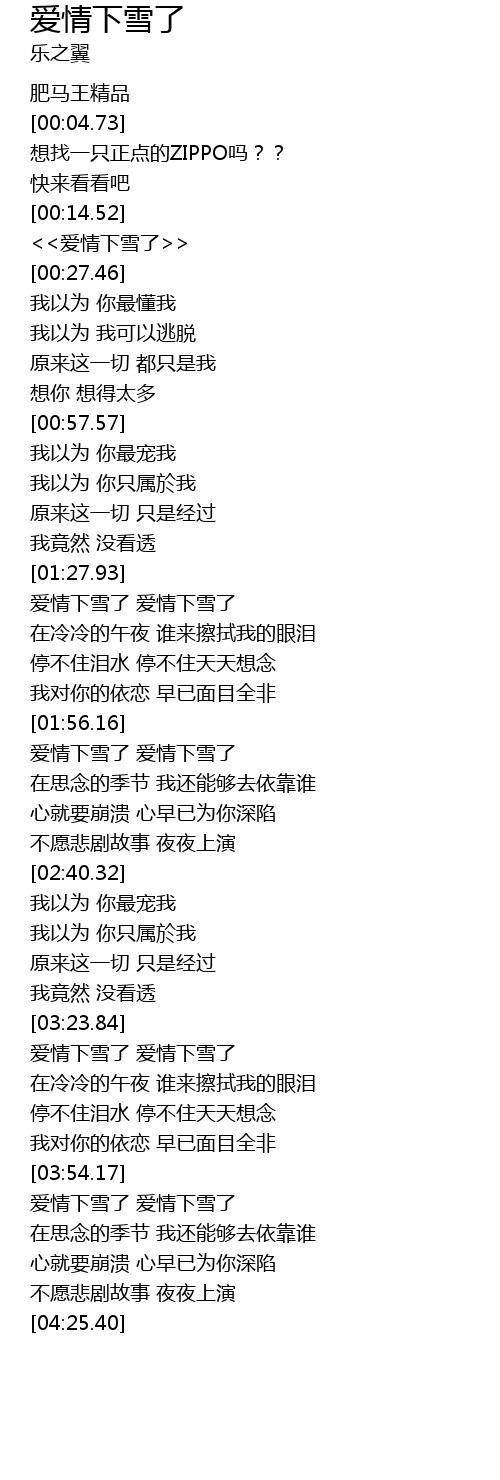 | [03:54.73] | 爱情下雪了 爱情下雪了 |