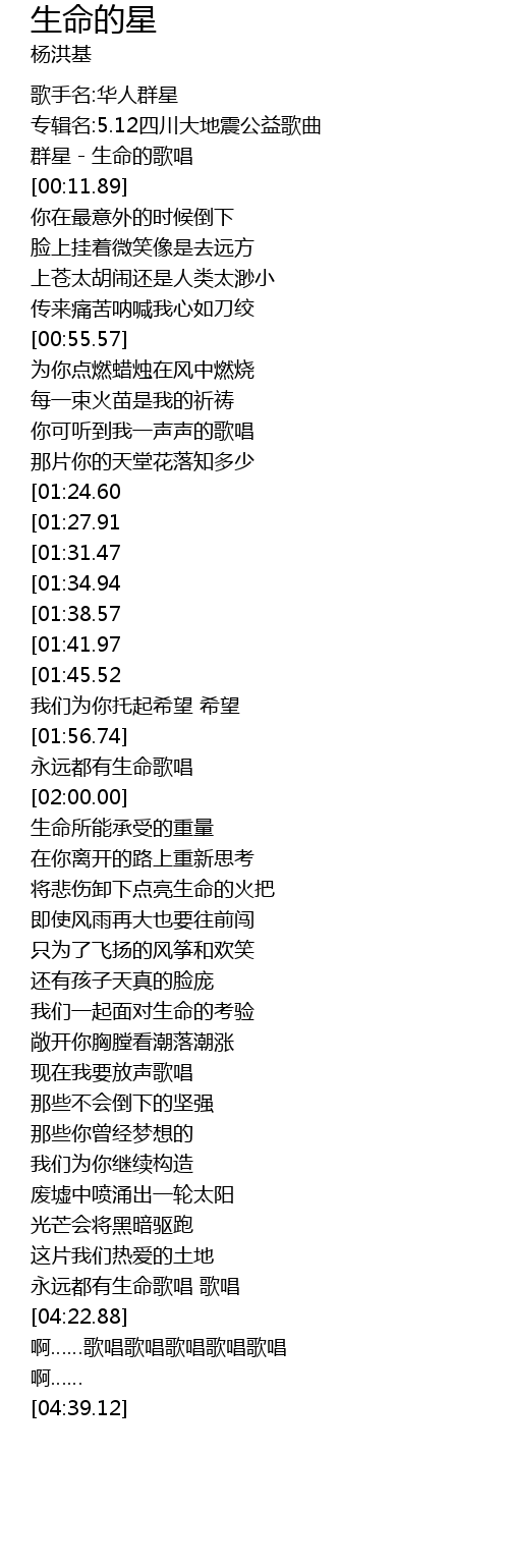 | [00:00.12] | 群星-生命的歌唱 |