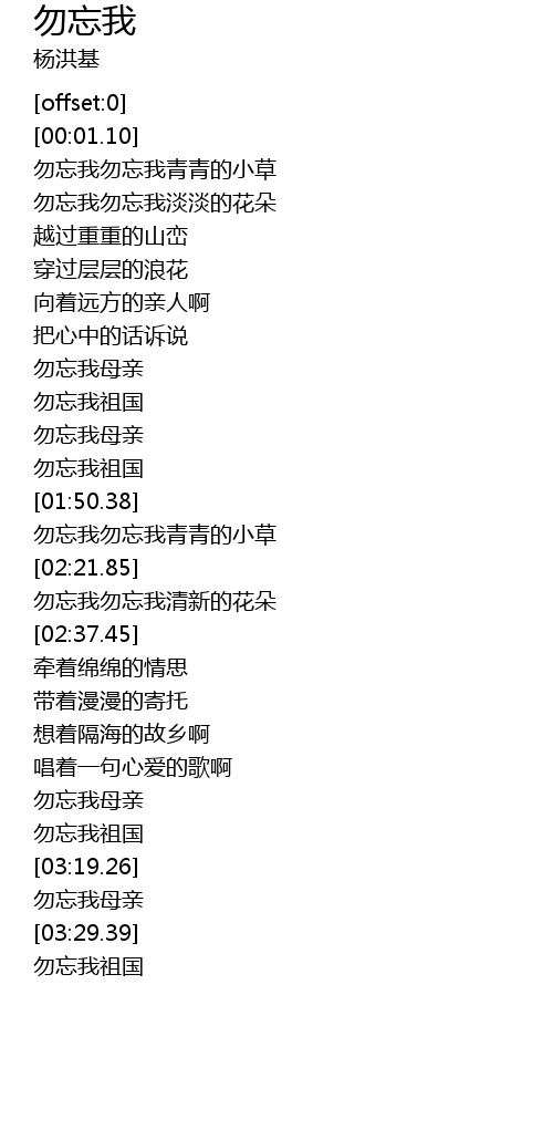 | [03:30.48] | wù wàng wǒ zǔ guó |