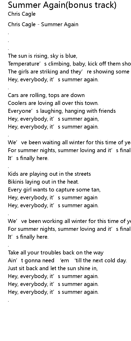 | [00:46.33] | Hey, everybody, it' s summer again, |