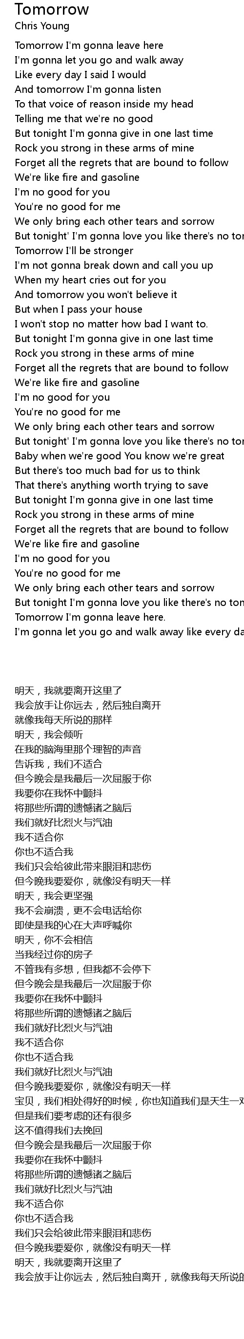 But tonight I'm gonna love you like there's no tomorrow |