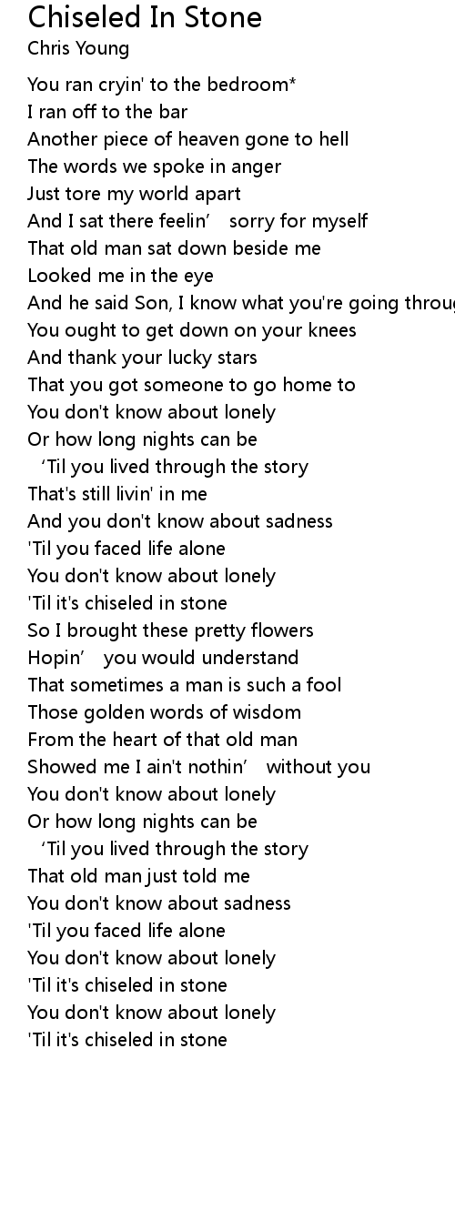 | ' Til it' s chiseled in stone | |
