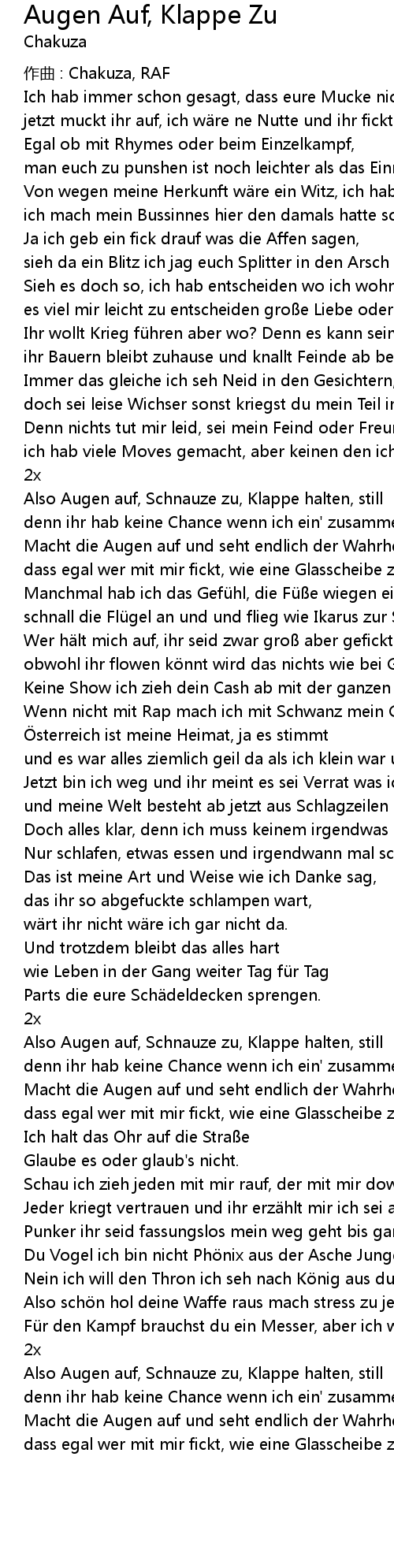 | Wer hält mich auf, ihr seid zwar groß aber gefickt | |