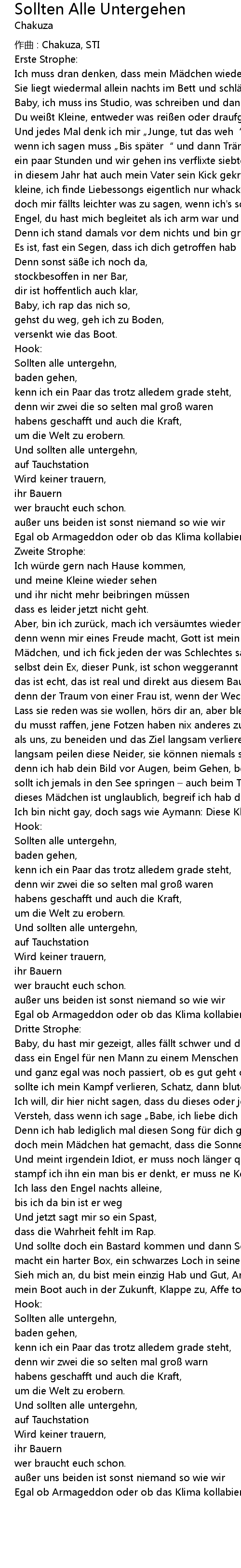 | Und sollte doch ein Bastard kommen und dann Scheisse erz hlen, | |