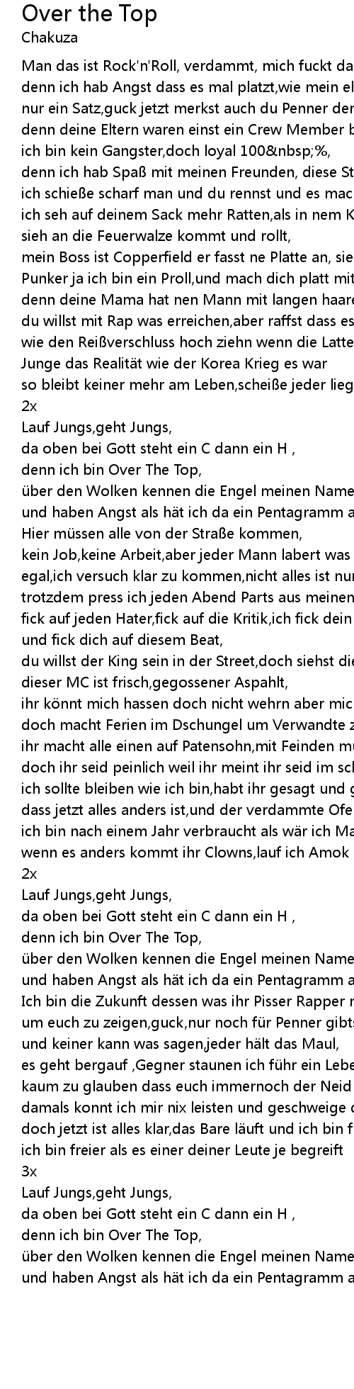 | fick auf jeden Hater,fick auf die Kritik,ich fick dein Mädchen,fick dein Leben und fick dich auf diesem Beat, | |