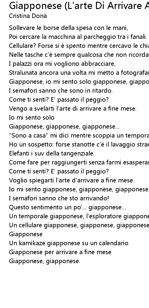 | Song | Giapponese (L'arte Di Arrivare A Fine Mese) |