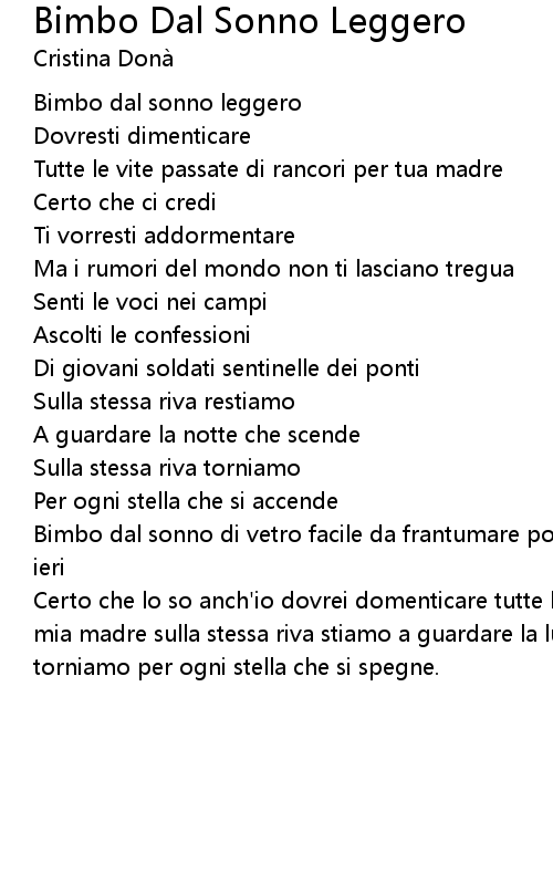 Bimbo Dal Sonno Leggero Lyrics