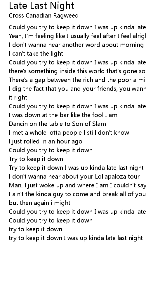 try to keep it down I was up kinda late last night |