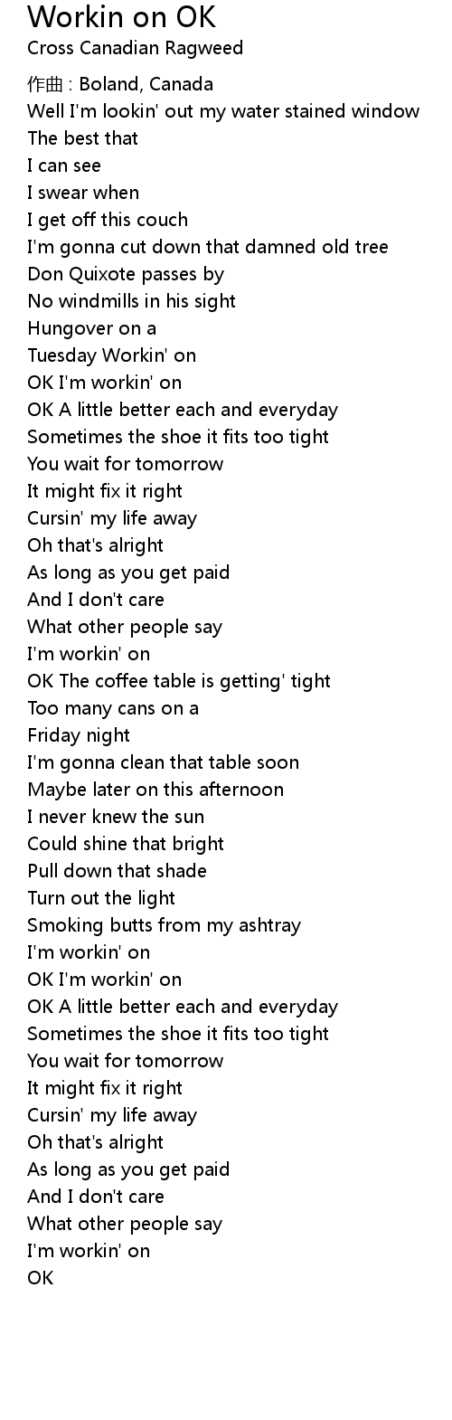 | Song | Workin on OK |