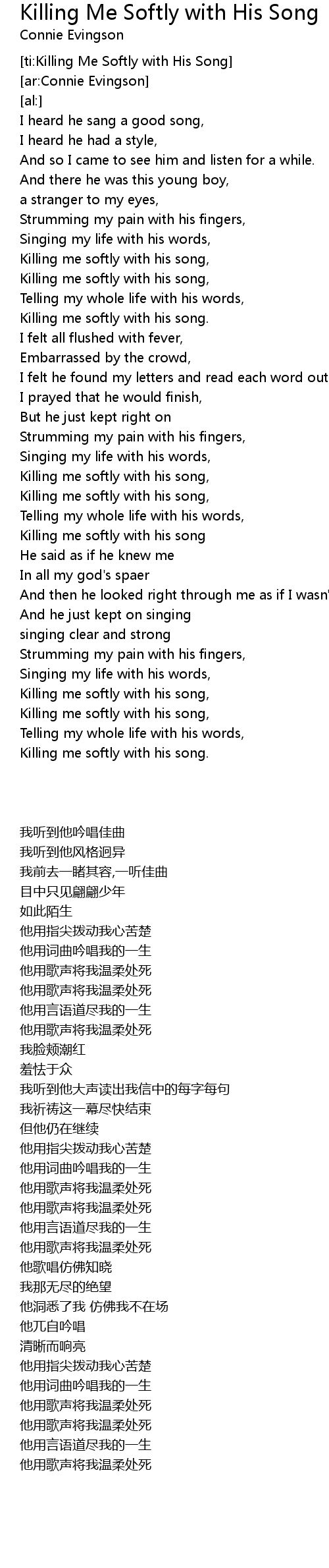 [ti:Killing Me Softly with His Song] |