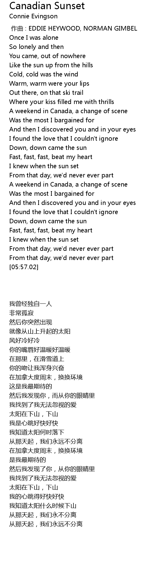 | [02:36.16] | A weekend in Canada, a change of scene |