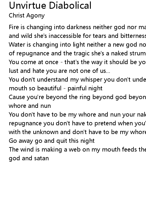 You don't have to be my whore and nun your naked burden falls today full of repugnance you don't have to pretend when you're kissing you aren't connected with the unknown and don't have to be my whore dressed in soutane...