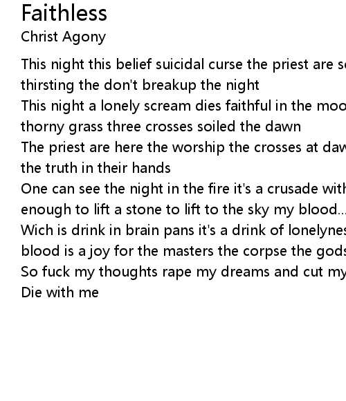 This night this belief suicidal curse the priest are screaming in chorus thirsting the don't breakup the night |
