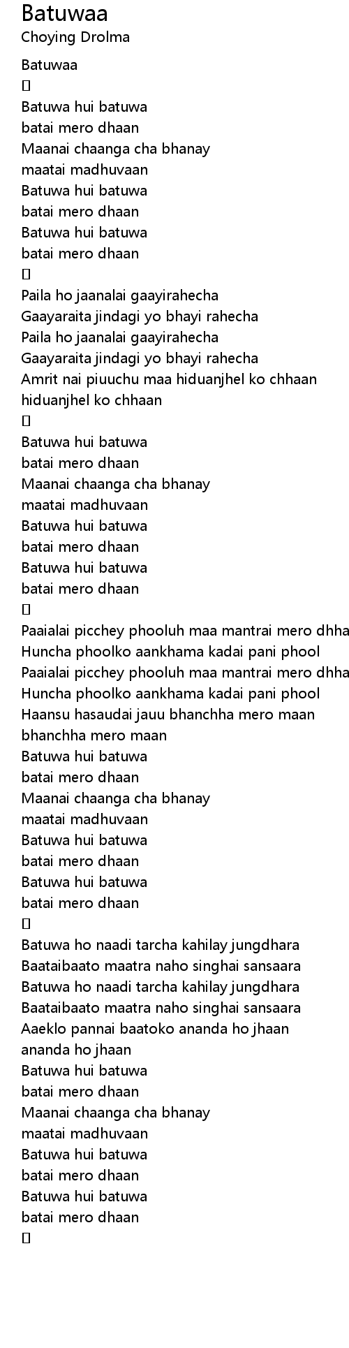 | [00:36.90] | batai mero dhaan |