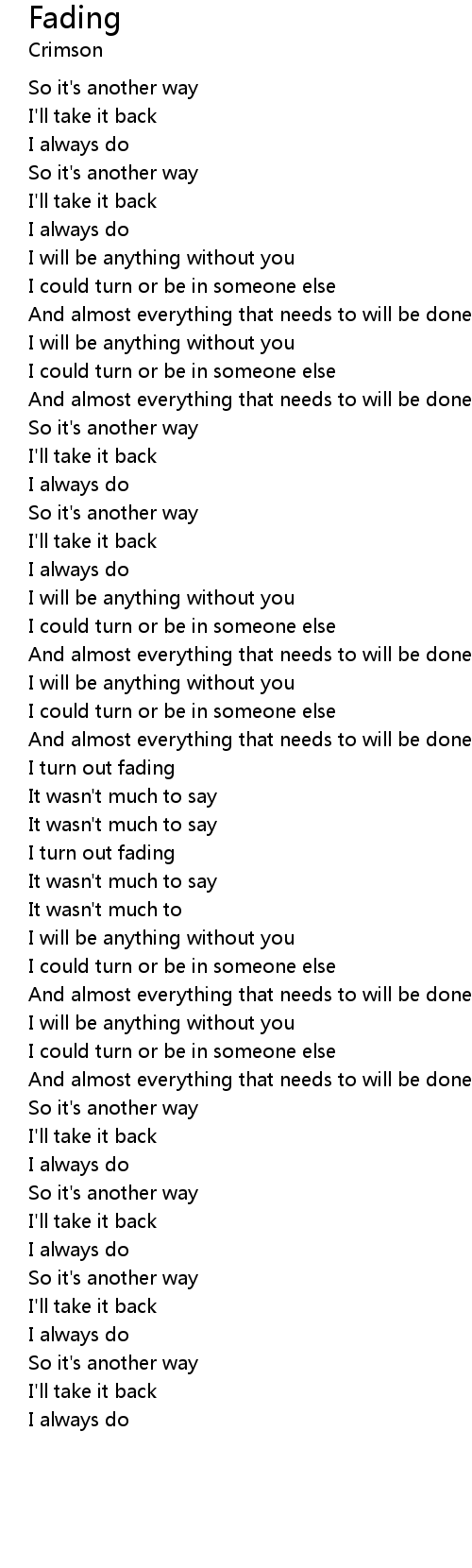 | I turn out fading | |