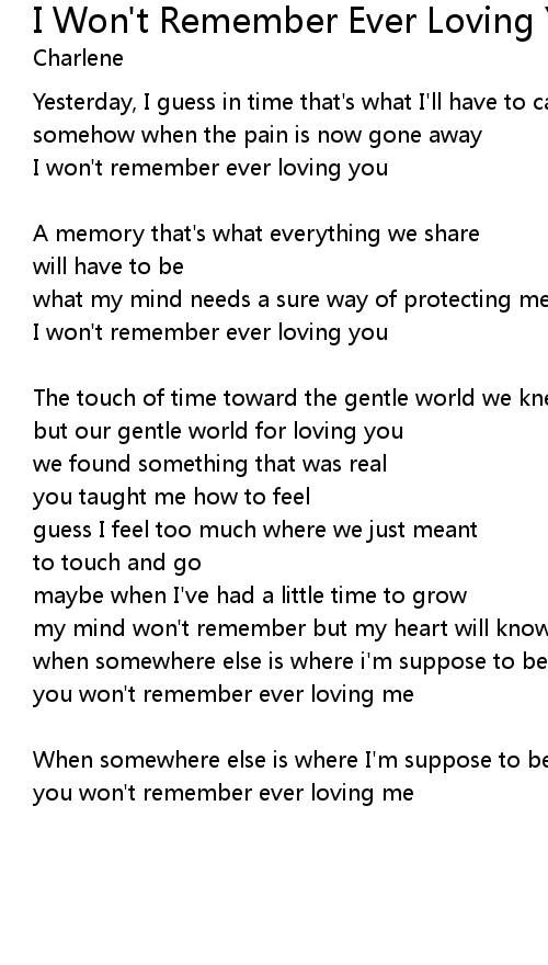 I won't remember ever loving you |