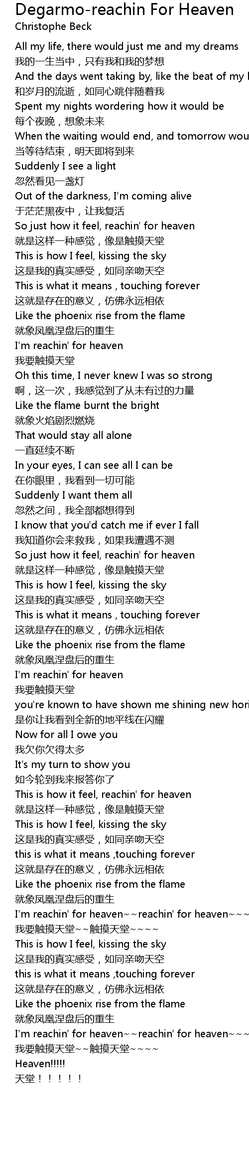 | I'm reachin' for heaven~~reachin' for heaven~~~~ | |