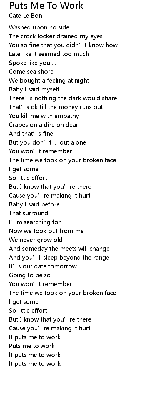| Song | Puts Me To Work |