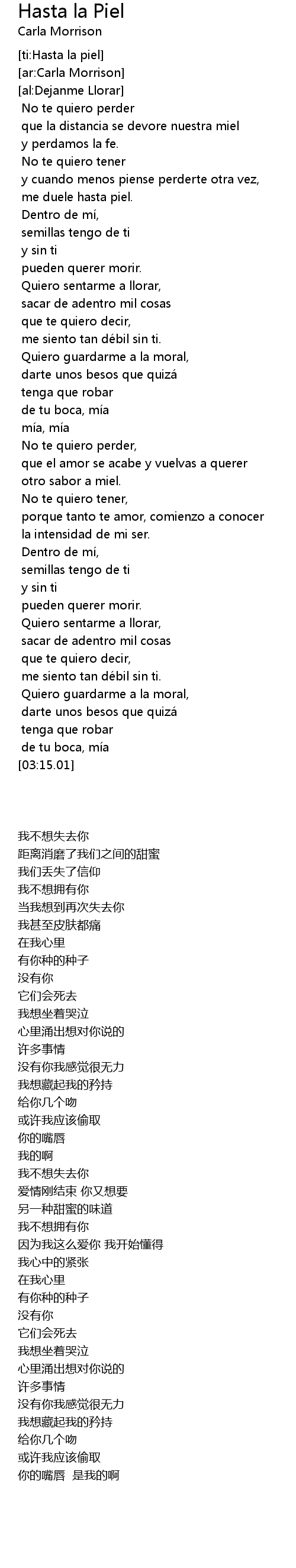 | [01:46.58] | que el amor se acabe y vuelvas a querer |