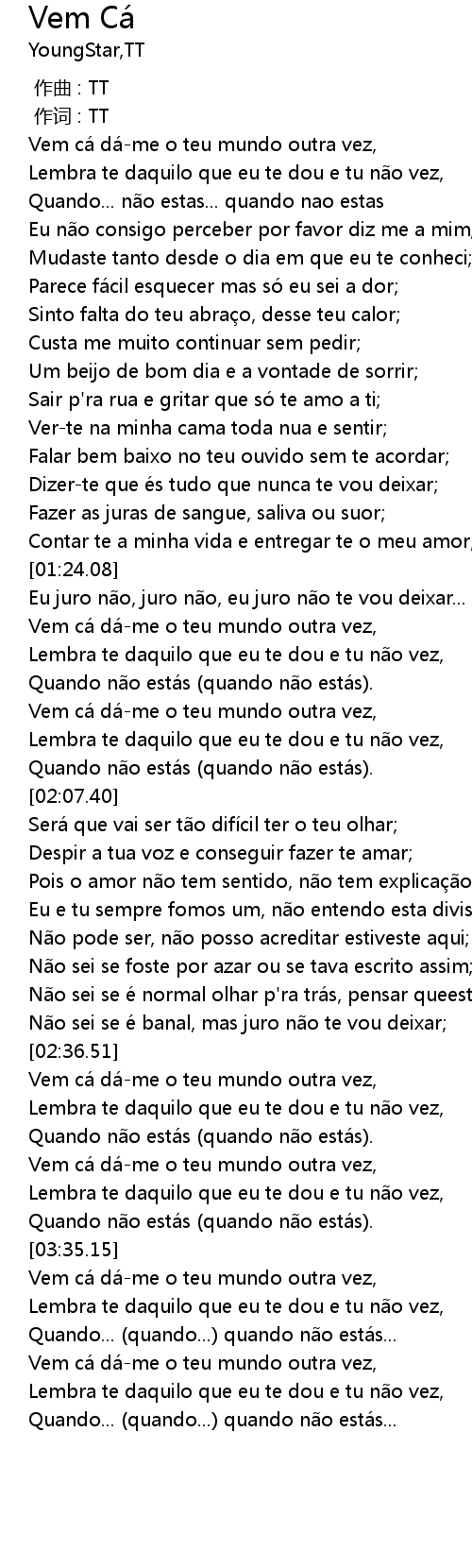 | [00:38.86] | Eu não consigo perceber por favor diz me a mim; |