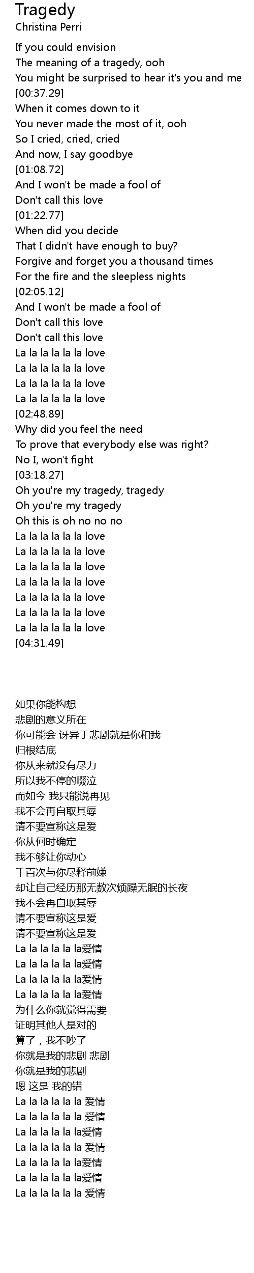 Oh you're my tragedy |