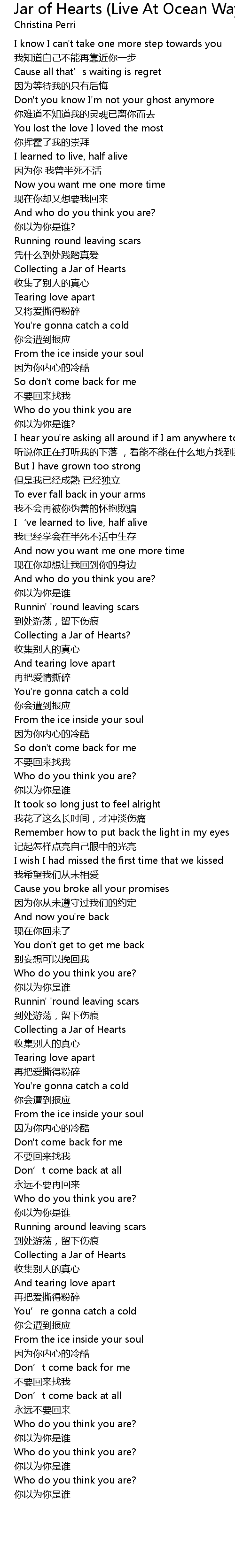 | Song | Jar of Hearts (Live At Ocean Way Studios) |